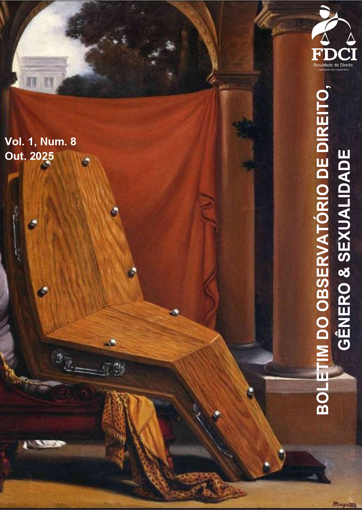 v. 1 n. 1 (2025)O Observatório de Direito, Gênero & Sexualidade, ao ser concebido, foi idealizado como um espaço de comunicação e de difusão de questões emergentes e problemáticas que envolve a interface entre Direito, Gênero e Sexualidade. Denota-se, portanto, que é uma arena de convergência de reflexões que trazem à discussão a vocalização e as reivindicações de grupos e minorias marginalizados, em razão de suas condições e orientações de gênero, de sexualidade e de autodeterminação sexual. Assim, reconhece-se a multiplicidade de pautas e reivindicações, mas também o aspecto interdisciplinar das questões, cujos atravessamentos perpassam, por necessário, os debates envolvendo a própria conotação de dignidade da pessoa humana expressamente reconhecida no Texto Constitucional. Assim, as projeções de tal direito não se limitam aos dispositivos contidos na Carta de 1988, mas se projetam e influenciam a percepção da promoção do indivíduo, inclusive na compreensão de uma dimensão de gênero e de sexualidade da dignidade da pessoa humana. O Observatório de Direito, Gênero & Sexualidade, a partir da disponibilização de seu boletim informativo, traz à baila demandas e temática que são silenciadas ou inviabilizadas, mas que, devido às suas densidades jurídico-normativas, reclamam uma perspectiva analítica.